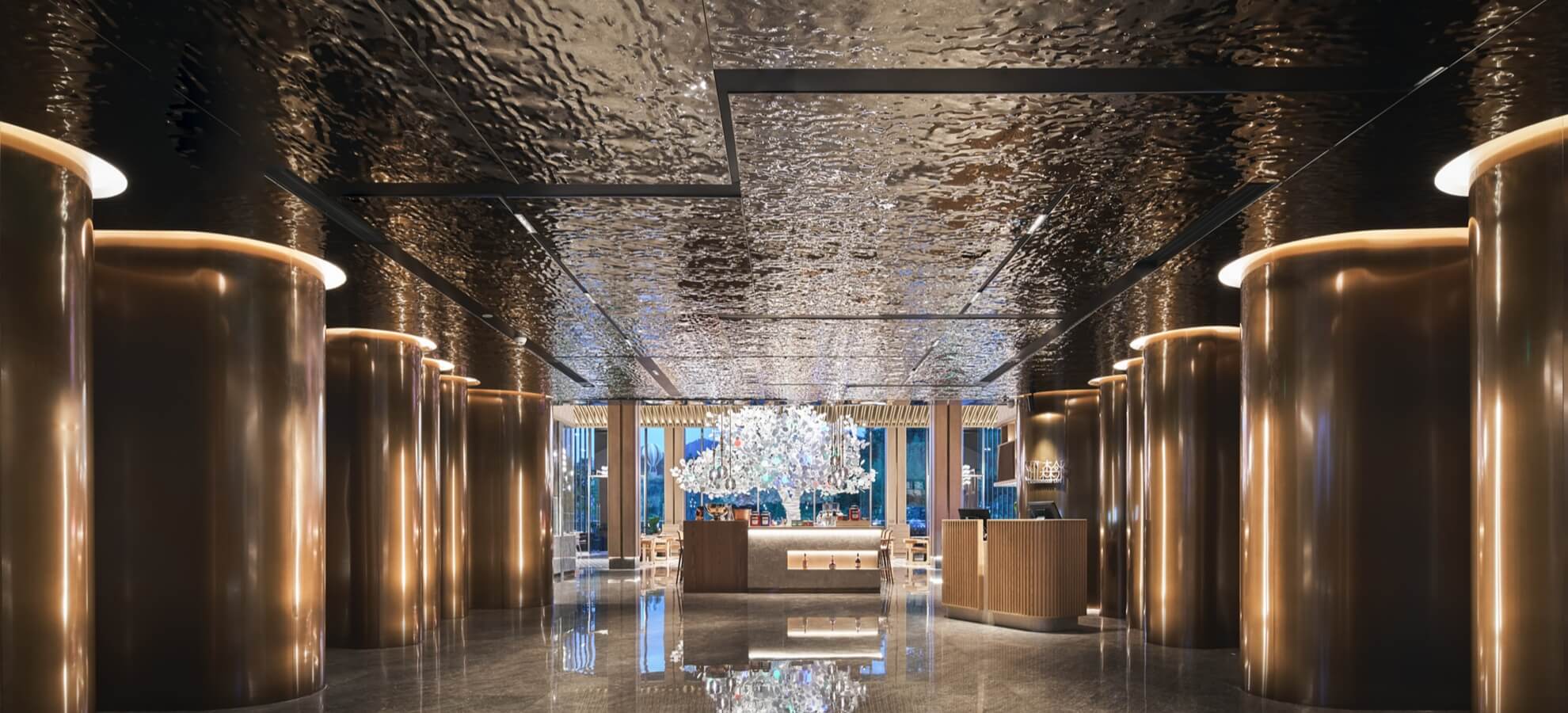 Metal cladding systems, such as facades, column cladding, ceilings, and elevator panels, offer both durability and aesthetic appeal. These metal coverings enhance architectural spaces with their unique texture and refined finish, making the structural design more visually striking and sophisticated.